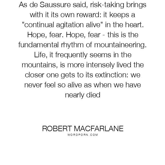 Robert Macfarlane quote. As de Saussure said, risk-taking brings with it its own reward: it keeps a