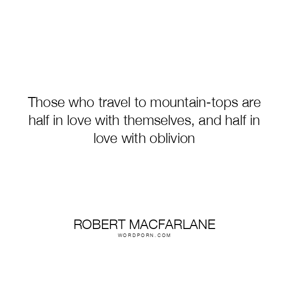 Robert Macfarlane quote. Those who travel to mountain-tops are half in love with themselves, and half in love with oblivion