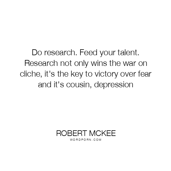 Do research. Feed your talent. Research not only wins the war on cliche, it's the key to victory over fear and it's cousin, depression