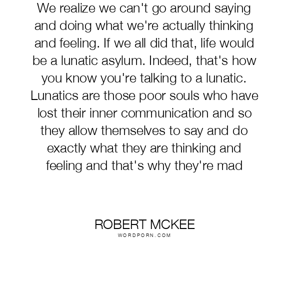 We realize we can't go around saying and doing what we're actually thinking and feeling. If we all did that, life would be a lunatic asylum. Indeed, that's how you know you're talking to a lunatic. Lunatics are those poor souls who have lost their inner communication and so they allow themselves to say and do exactly what they are thinking and feeling and that's why they're mad