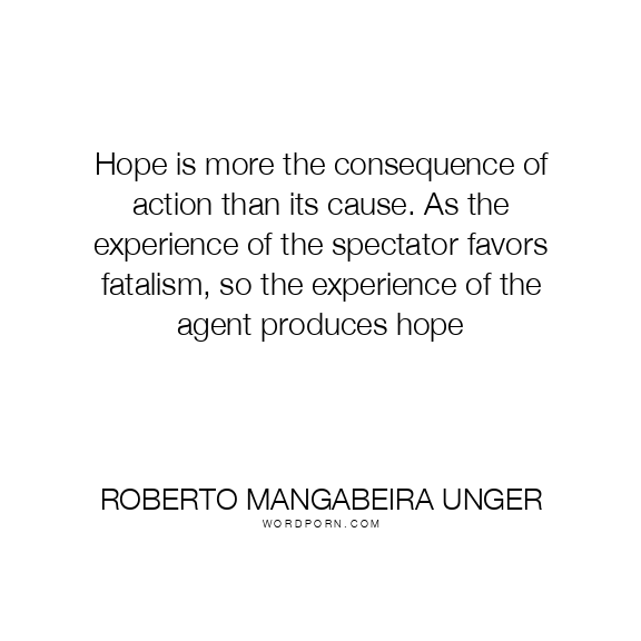 Hope is more the consequence of action than its cause. As the experience of the spectator favors fatalism, so the experience of the agent produces hope