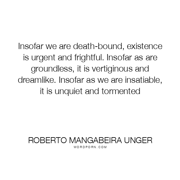 Insofar we are death-bound, existence is urgent and frightful. Insofar as are groundless, it is vertiginous and dreamlike. Insofar as we are insatiable, it is unquiet and tormented