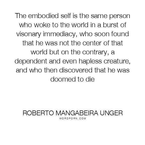 The embodied self is the same person who woke to the world in a burst of visonary immediacy, who soon found that he was not the center of that world but on the contrary, a dependent and even hapless creature, and who then discovered that he was doomed to die