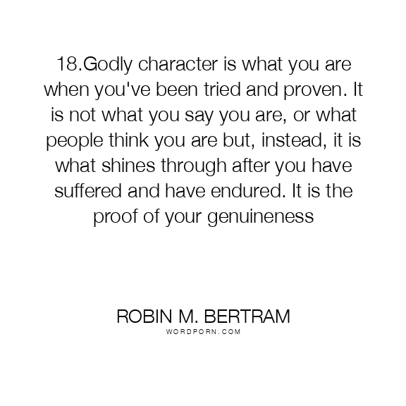 18.Godly character is what you are when you've been tried and proven. It is not what you say you are, or what people think you are but, instead, it is what shines through after you have suffered and have endured. It is the proof of your genuineness