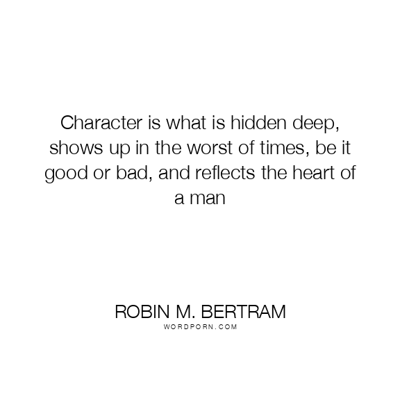 Character is what is hidden deep, shows up in the worst of times, be it good or bad, and reflects the heart of a man