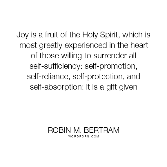 Joy is a fruit of the Holy Spirit, which is most greatly experienced in the heart of those willing to surrender all self-sufficiency: self-promotion, self-reliance, self-protection, and self-absorption: it is a gift given
