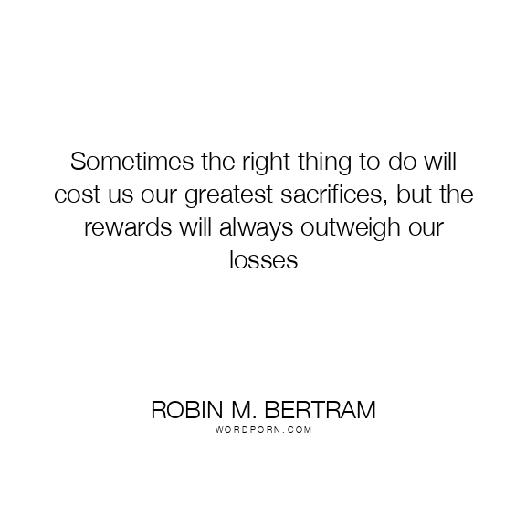 Sometimes the right thing to do will cost us our greatest sacrifices, but the rewards will always outweigh our losses
