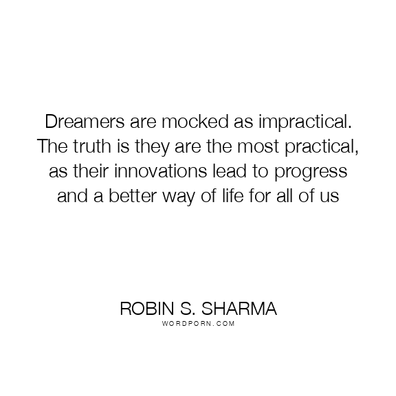 Dreamers are mocked as impractical. The truth is they are the most practical, as their innovations lead to progress and a better way of life for all of us