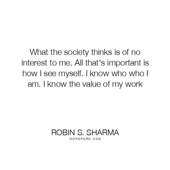 What the society thinks is of no interest to me. All that's important is how I see myself. I know who who I am. I know the value of my work