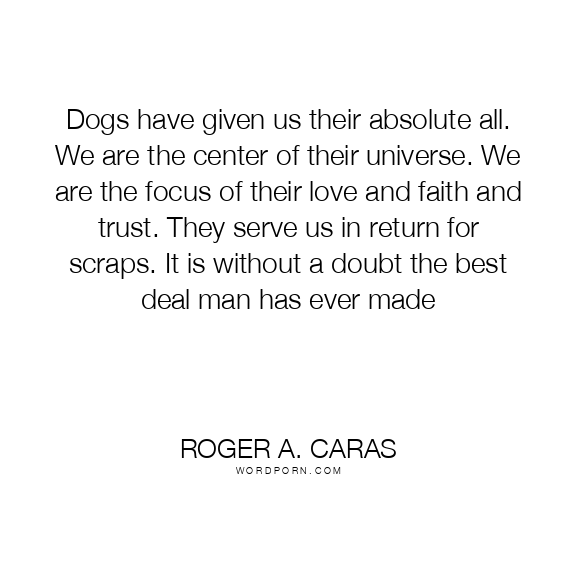 Dogs have given us their absolute all. We are the center of their universe. We are the focus of their love and faith and trust. They serve us in return for scraps. It is without a doubt the best deal man has ever made