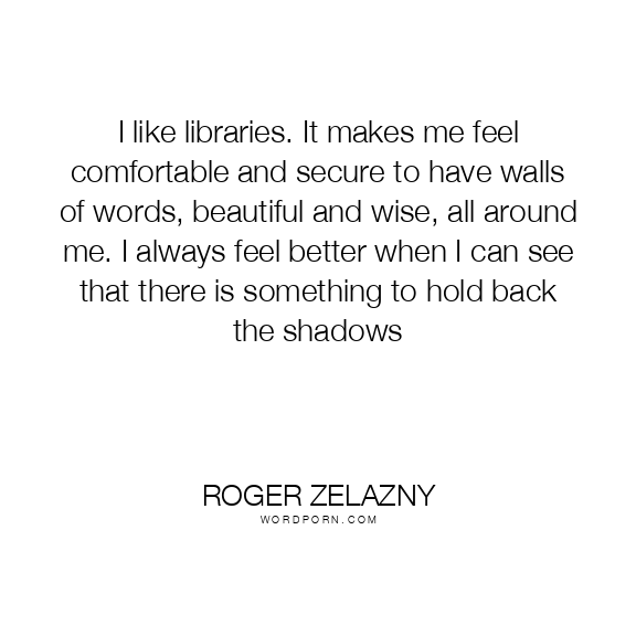 I like libraries. It makes me feel comfortable and secure to have walls of words, beautiful and wise, all around me. I always feel better when I can see that there is something to hold back the shadows