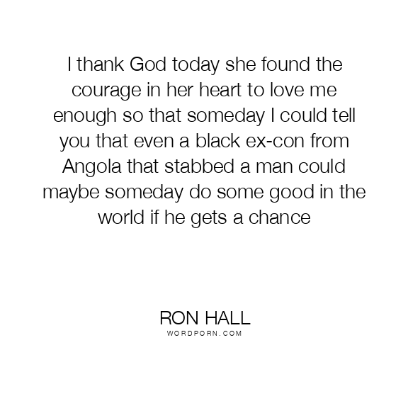 I thank God today she found the courage in her heart to love me enough so that someday I could tell you that even a black ex-con from Angola that stabbed a man could maybe someday do some good in the world if he gets a chance