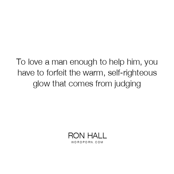 To love a man enough to help him, you have to forfeit the warm, self-righteous glow that comes from judging