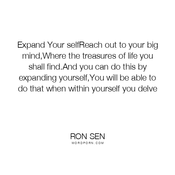 Expand Your selfReach out to your big mind,Where the treasures of life you shall find.And you can do this by expanding yourself,You will be able to do that when within yourself you delve