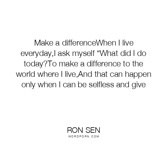 Make a differenceWhen I live everyday,I ask myself “What did I do today?To make a difference to the world where I live,And that can happen only when I can be selfless and give