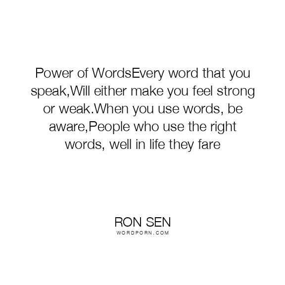 Power of WordsEvery word that you speak,Will either make you feel strong or weak.When you use words, be aware,People who use the right words, well in life they fare