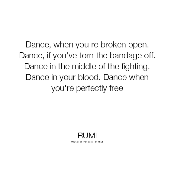 Dance, when you're broken open. Dance, if you've torn the bandage off. Dance in the middle of the fighting. Dance in your blood. Dance when you're perfectly free