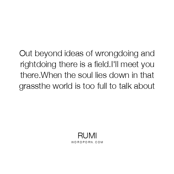 Out beyond ideas of wrongdoing and rightdoing there is a field.I'll meet you there.When the soul lies down in that grassthe world is too full to talk about