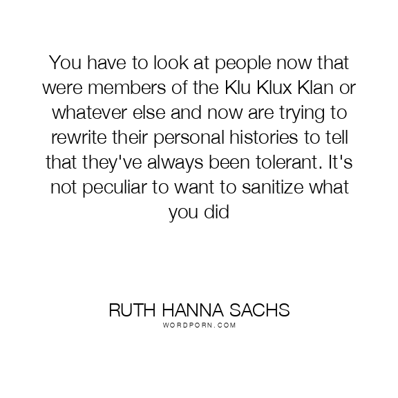 You have to look at people now that were members of the Klu Klux Klan or whatever else and now are trying to rewrite their personal histories to tell that they've always been tolerant. It's not peculiar to want to sanitize what you did