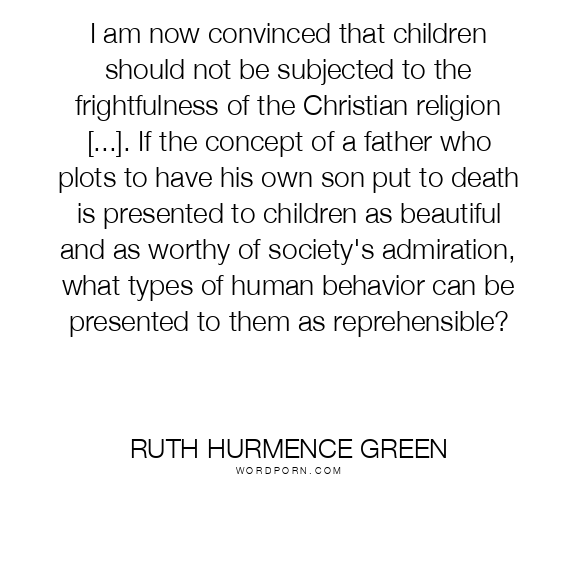 I am now convinced that children should not be subjected to the frightfulness of the Christian religion [...]. If the concept of a father who plots to have his own son put to death is presented to children as beautiful and as worthy of society's admiration, what types of human behavior can be presented to them as reprehensible?