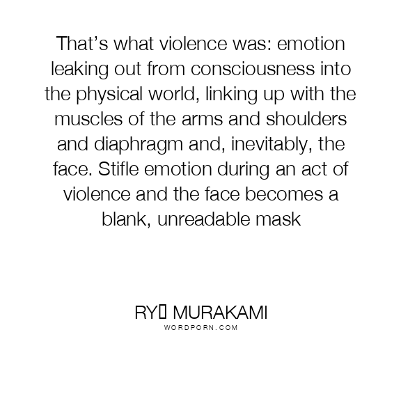 That’s what violence was: emotion leaking out from consciousness into the physical world, linking up with the muscles of the arms and shoulders and diaphragm and, inevitably, the face. Stifle emotion during an act of violence and the face becomes a blank, unreadable mask