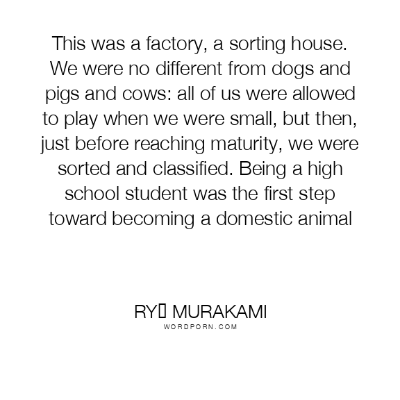 This was a factory, a sorting house. We were no different from dogs and pigs and cows: all of us were allowed to play when we were small, but then, just before reaching maturity, we were sorted and classified. Being a high school student was the first step toward becoming a domestic animal