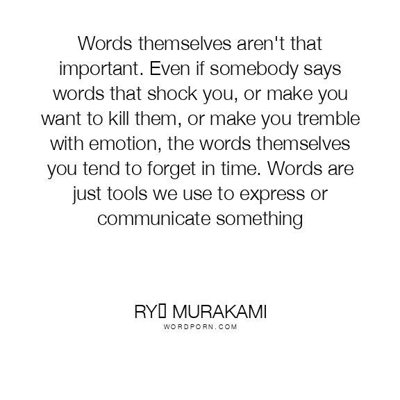 Words themselves aren't that important. Even if somebody says words that shock you, or make you want to kill them, or make you tremble with emotion, the words themselves you tend to forget in time. Words are just tools we use to express or communicate something