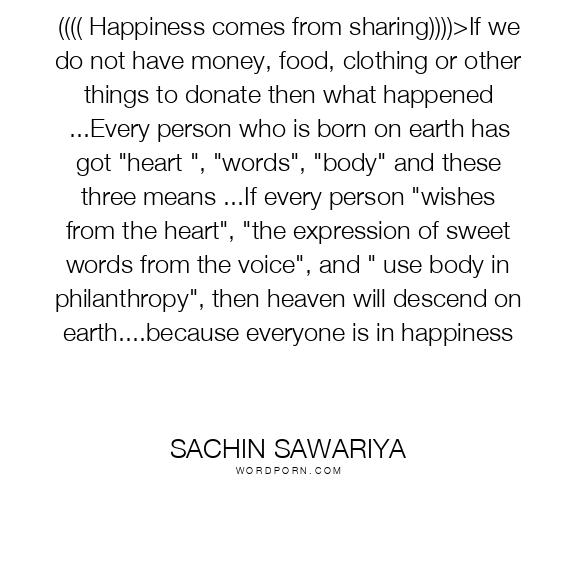 Sachin sawariya quote. (((( Happiness comes from sharing))))>If we do not have money, food, clothing or other things to donate then what happened ...Every person who is born on earth has got
