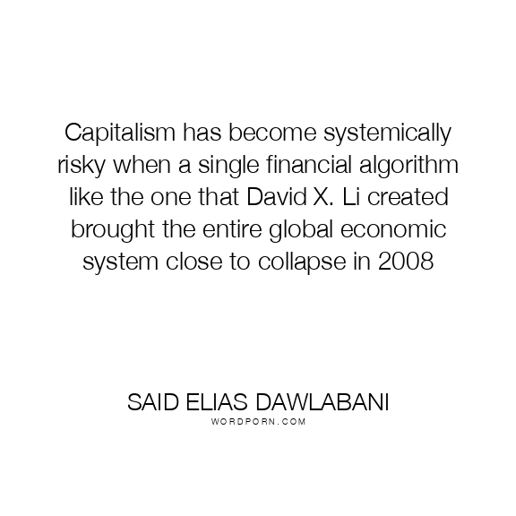 Capitalism has become systemically risky when a single financial algorithm like the one that David X. Li created brought the entire global economic system close to collapse in 2008