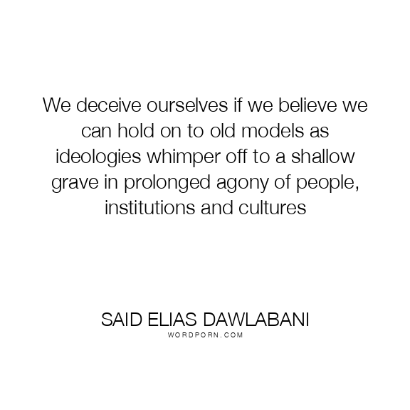 We deceive ourselves if we believe we can hold on to old models as ideologies whimper off to a shallow grave in prolonged agony of people, institutions and cultures