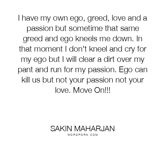 I have my own ego, greed, love and a passion but sometime that same greed and ego kneels me down. In that moment I don't kneel and cry for my ego but I will clear a dirt over my pant and run for my passion. Ego can kill us but not your passion not your love. Move On!!!
