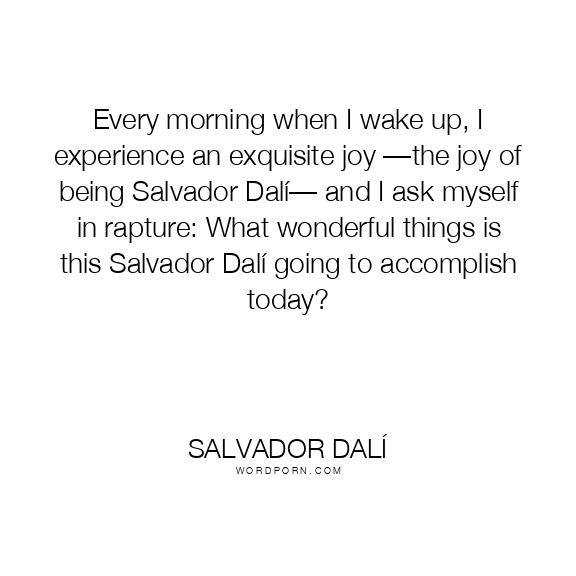 Every morning when I wake up, I experience an exquisite joy —the joy of being Salvador Dalí— and I ask myself in rapture: What wonderful things is this Salvador Dalí going to accomplish today?