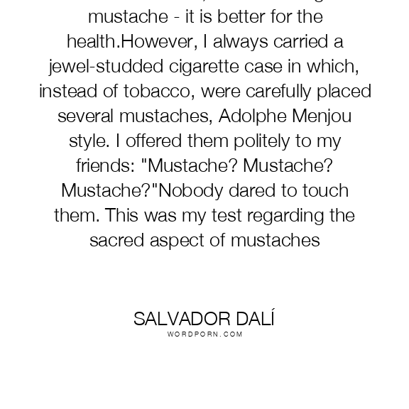 Since I don't smoke, I decided to grow a mustache - it is better for the health.However, I always carried a jewel-studded cigarette case in which, instead of tobacco, were carefully placed several mustaches, Adolphe Menjou style. I offered them politely to my friends: "Mustache? Mustache? Mustache?"Nobody dared to touch them. This was my test regarding the sacred aspect of mustaches