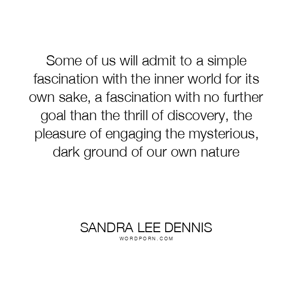 Some of us will admit to a simple fascination with the inner world for its own sake, a fascination with no further goal than the thrill of discovery, the pleasure of engaging the mysterious, dark ground of our own nature