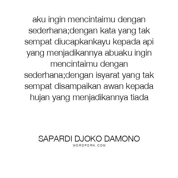 aku ingin mencintaimu dengan sederhana;dengan kata yang tak sempat diucapkankayu kepada api yang menjadikannya abuaku ingin mencintaimu dengan sederhana;dengan isyarat yang tak sempat disampaikan awan kepada hujan yang menjadikannya tiada