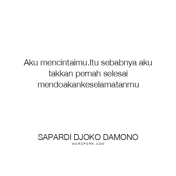 Aku mencintaimu.Itu sebabnya aku takkan pernah selesai mendoakankeselamatanmu