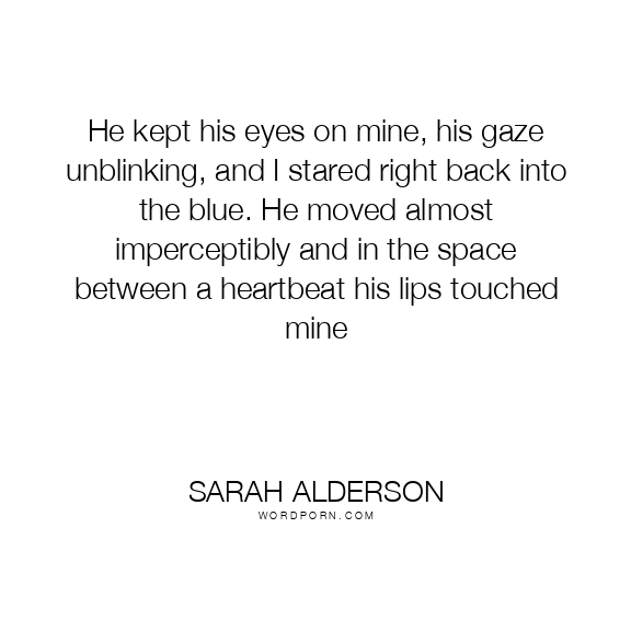 He kept his eyes on mine, his gaze unblinking, and I stared right back into the blue. He moved almost imperceptibly and in the space between a heartbeat his lips touched mine