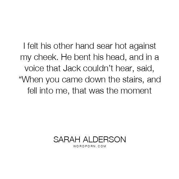 I felt his other hand sear hot against my cheek. He bent his head, and in a voice that Jack couldn’t hear, said, “When you came down the stairs, and fell into me, that was the moment