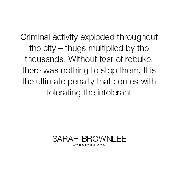 Criminal activity exploded throughout the city – thugs multiplied by the thousands. Without fear of rebuke, there was nothing to stop them. It is the ultimate penalty that comes with tolerating the intolerant