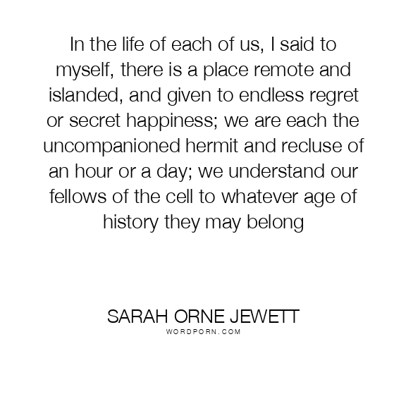 In the life of each of us, I said to myself, there is a place remote and islanded, and given to endless regret or secret happiness; we are each the uncompanioned hermit and recluse of an hour or a day; we understand our fellows of the cell to whatever age of history they may belong