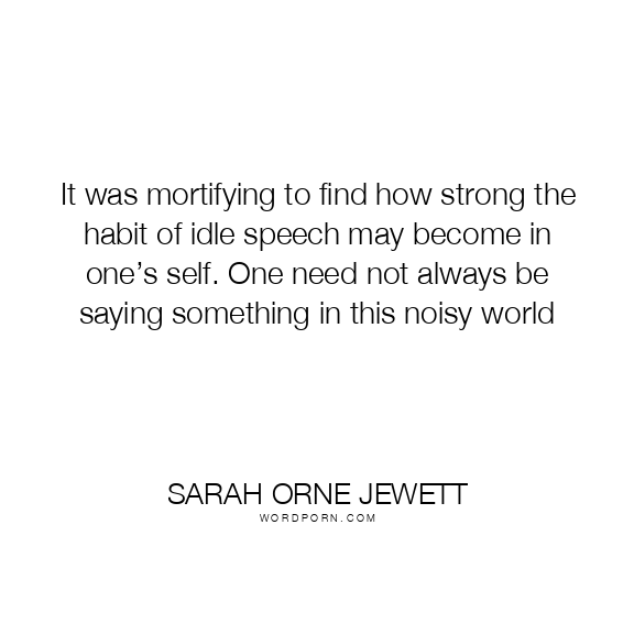 It was mortifying to find how strong the habit of idle speech may become in one’s self. One need not always be saying something in this noisy world