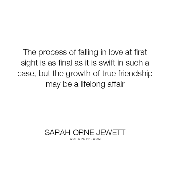The process of falling in love at first sight is as final as it is swift in such a case, but the growth of true friendship may be a lifelong affair
