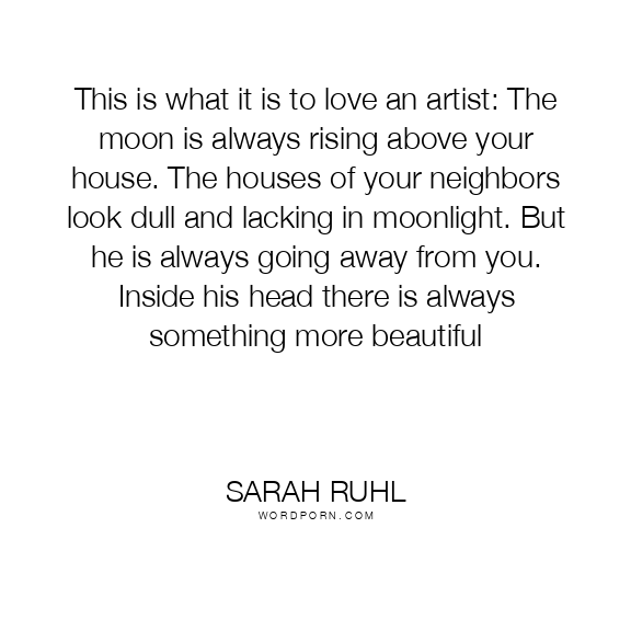 This is what it is to love an artist: The moon is always rising above your house. The houses of your neighbors look dull and lacking in moonlight. But he is always going away from you. Inside his head there is always something more beautiful