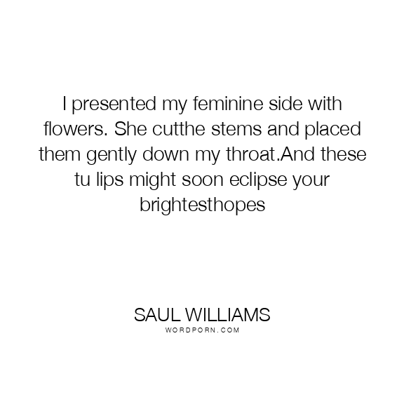 I presented my feminine side with flowers. She cutthe stems and placed them gently down my throat.And these tu lips might soon eclipse your brightesthopes