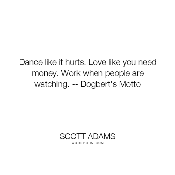 Dance like it hurts. Love like you need money. Work when people are watching. -- Dogbert's Motto