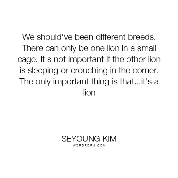 We should've been different breeds. There can only be one lion in a small cage. It's not important if the other lion is sleeping or crouching in the corner. The only important thing is that...it's a lion