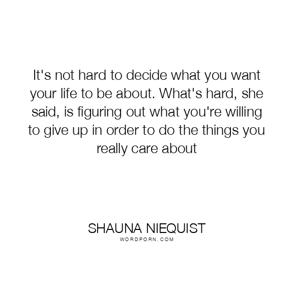 It's not hard to decide what you want your life to be about. What's hard, she said, is figuring out what you're willing to give up in order to do the things you really care about