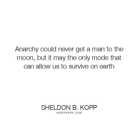 Anarchy could never get a man to the moon, but it may the only mode that can allow us to survive on earth