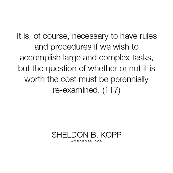 It is, of course, necessary to have rules and procedures if we wish to accomplish large and complex tasks, but the question of whether or not it is worth the cost must be perennially re-examined. (117)