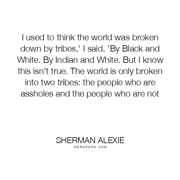 I used to think the world was broken down by tribes,' I said. 'By Black and White. By Indian and White. But I know this isn't true. The world is only broken into two tribes: the people who are assholes and the people who are not